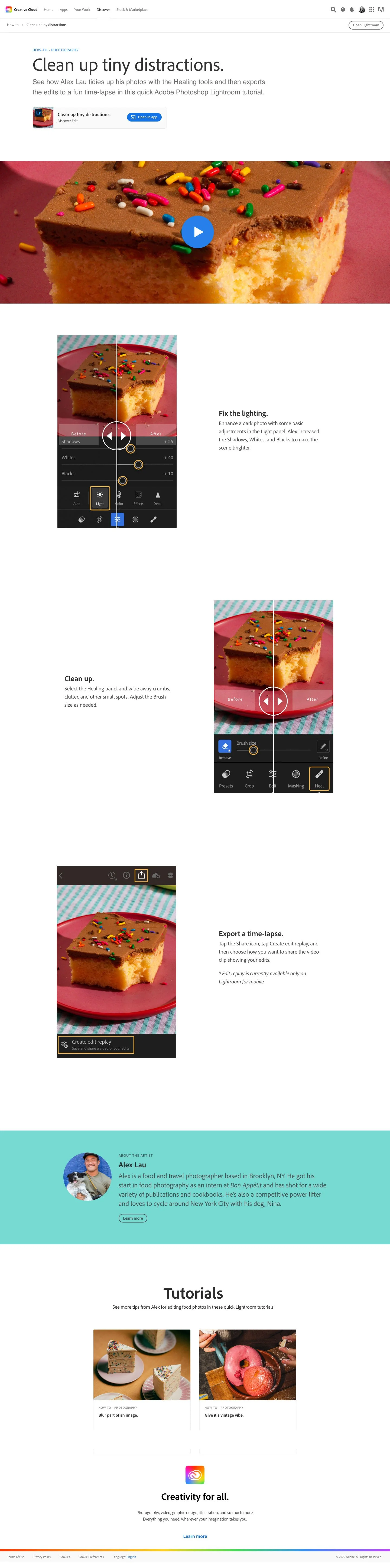 Alex Lau demonstrating how he uses the Adobe Lightroom features on his photos. We show this with stories that speak to the mobile user, targeting the acquisition and retention audiences.
